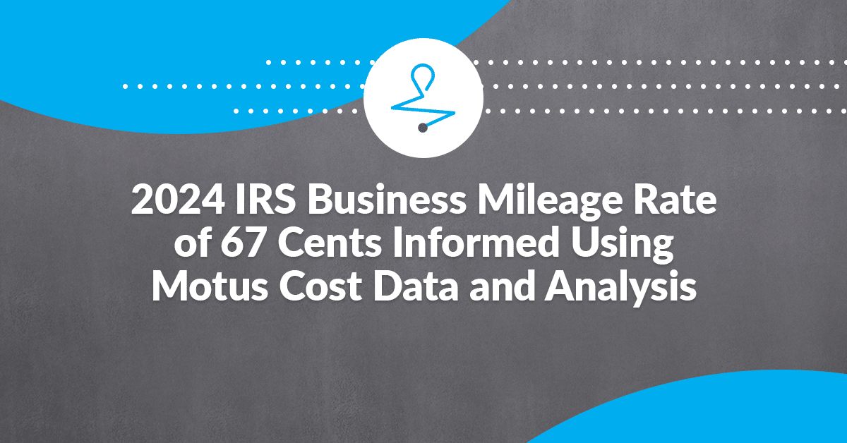 BOSTON, Mass., December 14, 2023 – The Internal Revenue Service (IRS) has unveiled the 2024 business mileage standard rate of 67 cents, leveraging data provided by Motus, the leader in mobile workforce reimbursement solutions. Renowned for their expertise in comprehending overall vehicle ownership and usage expenses, Motus harnesses data from the world’s largest pool of retained drivers. By analyzing automotive trends from the preceding year, the IRS determines the annual rate – an essential benchmark for deducting business vehicle expenses. For over four decades, the cost data and analysis provided by Motus have been the cornerstone of the IRS business mileage standard.